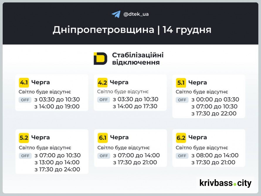 Читайте також: Криворіжцям пояснили, чому графіки відключень світла можуть змінюватися протягом дня