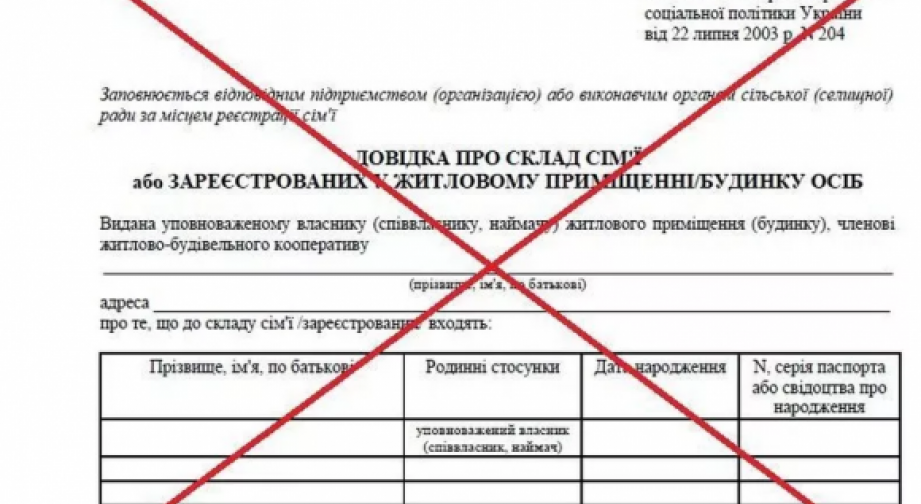 Кабінет Міністрів України скасував необхідність надання довідки про склад сім’ї для низки послуг.