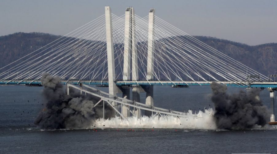 15 января местные жители попрощались с мостом. Строители заложили взрывчатку в основание концевых опор и взорвали мост утром. Несмотря на ранее время, многие жители города пришли посмотреть снос моста.
