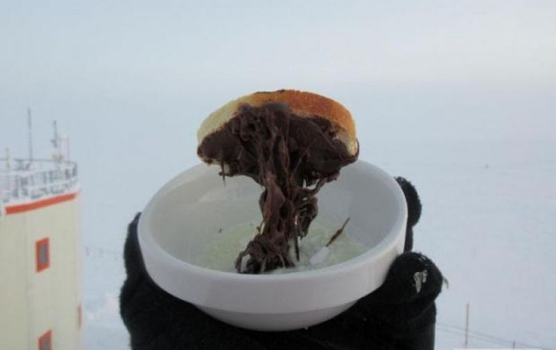Астробиолог Киприан Версо опубликовал в Сети забавные снимки, которые наглядно демонстрируют всю сложность жизни человека при температуре -60 градусов по Цельсию. Некоторые ингредиенты застывают просто на пути в тарелку,