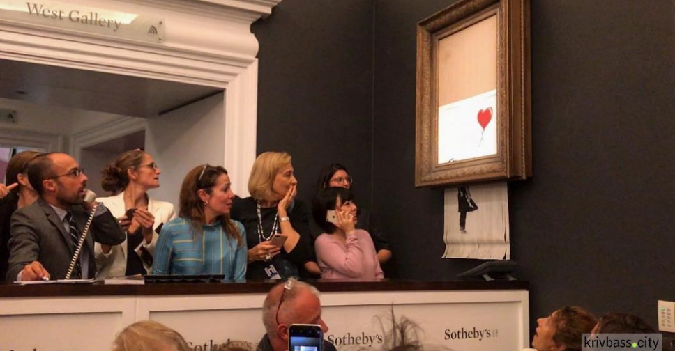 Картина Бэнкси «Девочка с шаром» была разрезана встроенным в раму шредером сразу после того, как ее продали на аукционе Sothebyʼs за 1,04 миллиона фунтов стерлингов (1,4 миллиона долларов).