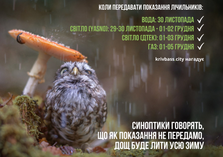 Коли передавати показання: 29-30 листопада - 01-02 грудня 2021 року.