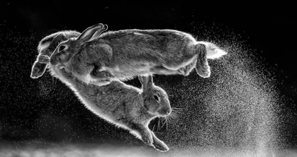Абсолютным победителем стал венгерский фотограф Чаба Дарочи с черно-белой работой Прыжок. На фото изображена пара прыгающих кроликов. Снимок, представленный в номинации Черно-белая съемка, был сделан на рассвете возле деревни Бокса в Венгрии.