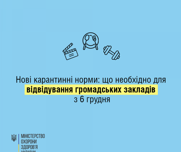 З 6 грудня починають діяти нові карантинні правила. У МОЗ підготували серію роз'яснень про основні зміни на жовтому та червоному рівнях епіднебезпеки.