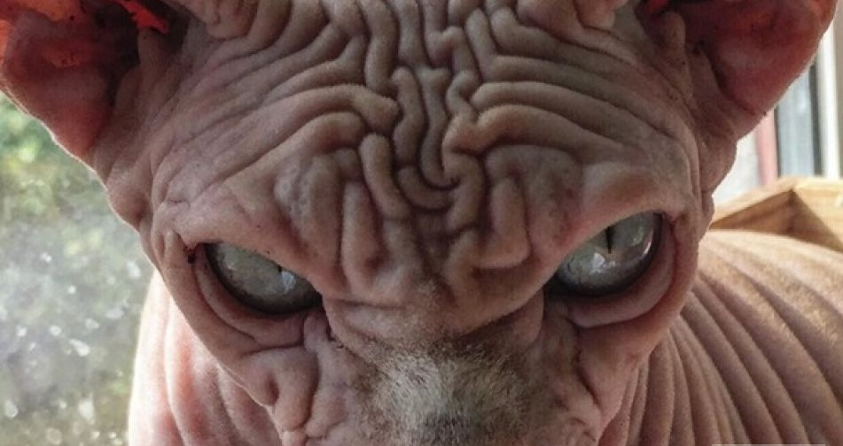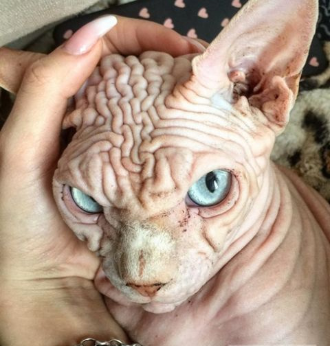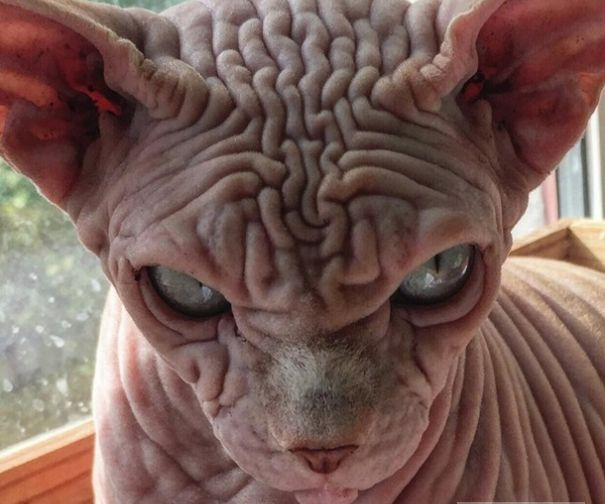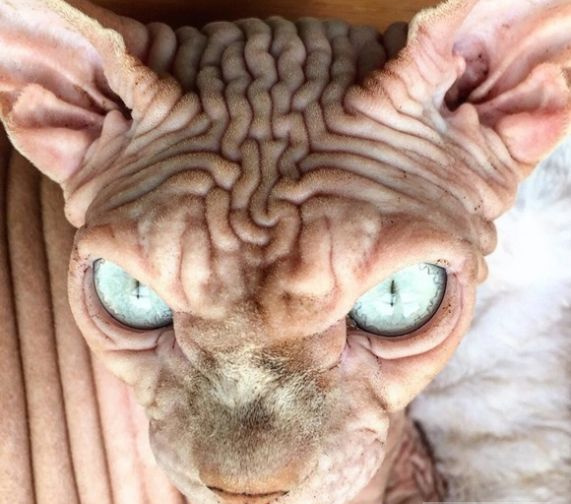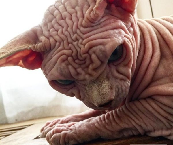 Складки кожи изгибаются так причудливо, что при взгляде на котика вспоминается мозг.