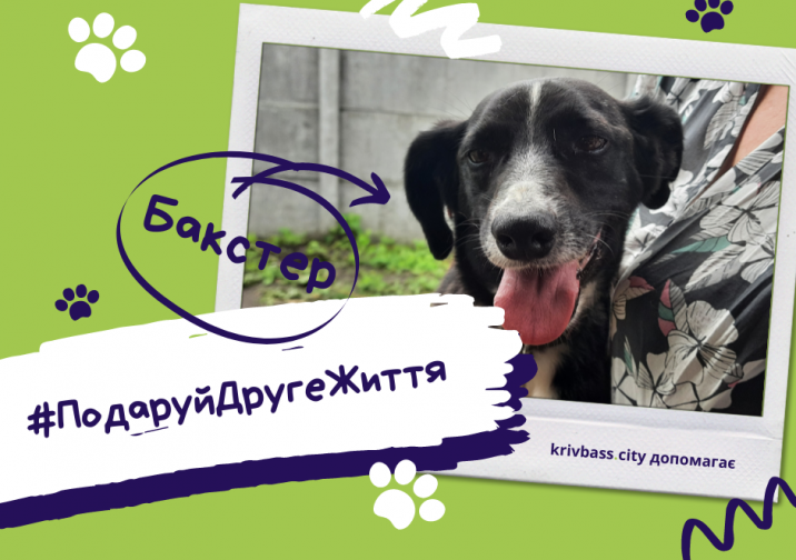 Журналісти krivbass.city продовжують пошуки героїв для проєкту #ПодаруйДругеЖиття. Головною зіркою чергового випуску став пес на прізвисько Бакстер. Чорнявий молодий собака вражає своєю люб’язністю та теплом: тільки-но почувши власне ім’я, малий стрибає у обійми до відвідувачів.