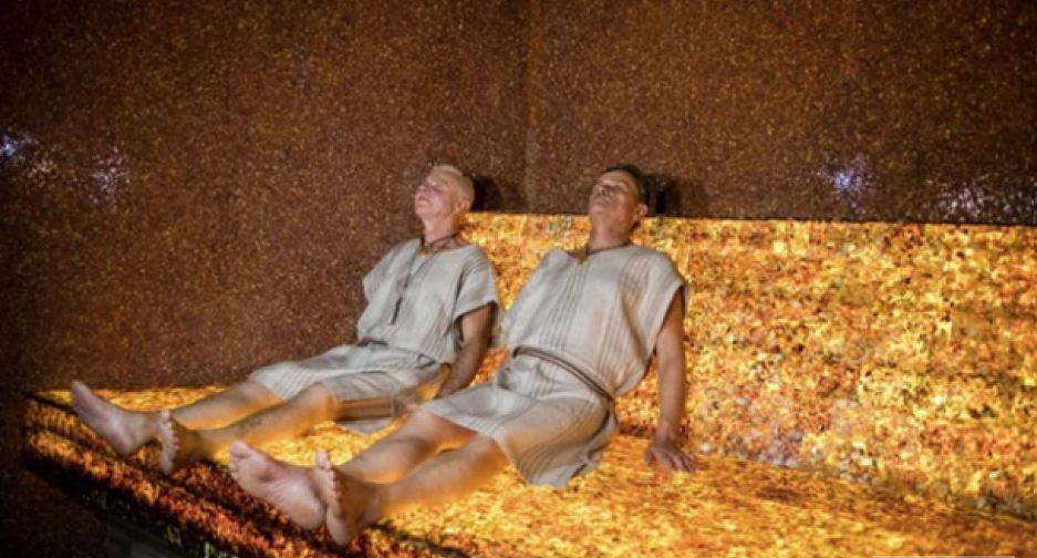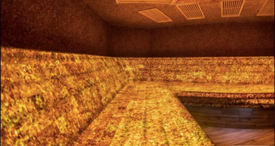 В Литве открыли первую в мире янтарную баню. В посещении для 15 человек стены, пол и лежаки покрыты янтарем.