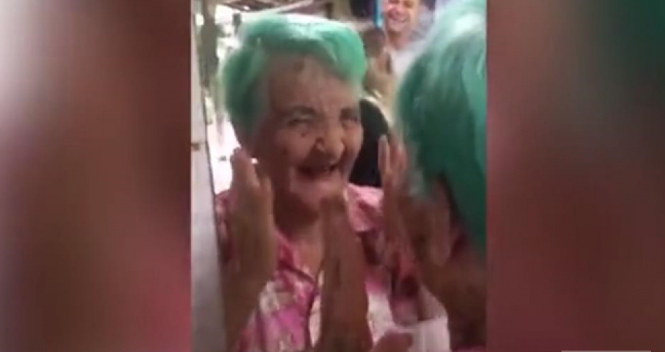 Жительница Бразилии в 80 лет впервые покрасила волосы и сразу в бирюзовый цвет.