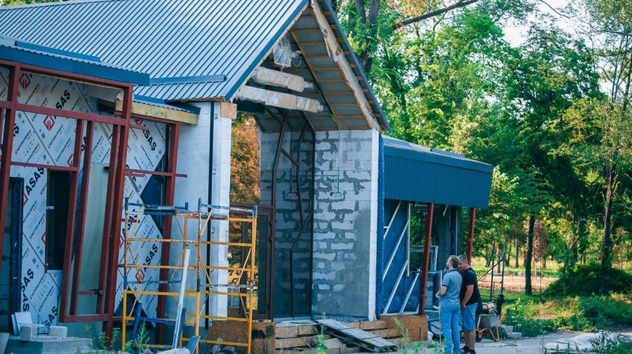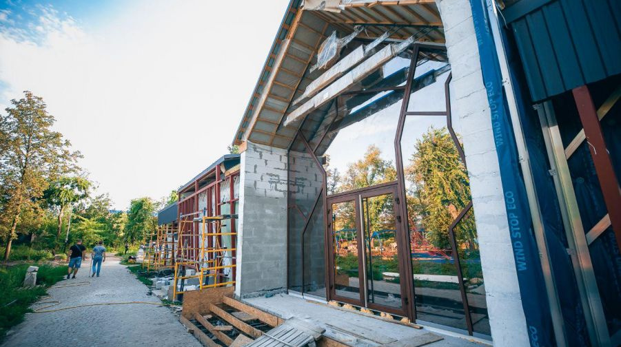 В доме матери и ребёнка появился огромный шестиметровый витраж, металлический каркас которого напоминает ветви дерева. Строители перешли к внутренним отделочным работам в холе и, непосредственно, в комнатах ожидания для мам и детей. Туалет практически готов, также здесь будет умывальник и пеленальные столы для малышей, место для разогрева детского питания и два столика для кормления. Фасад же, помимо элементов под дерево, украсит специальный зеркальный композит – его везут в нашу страну из-за границы.