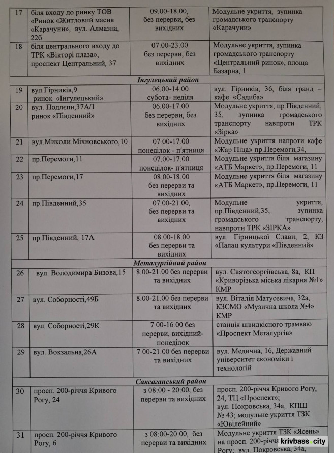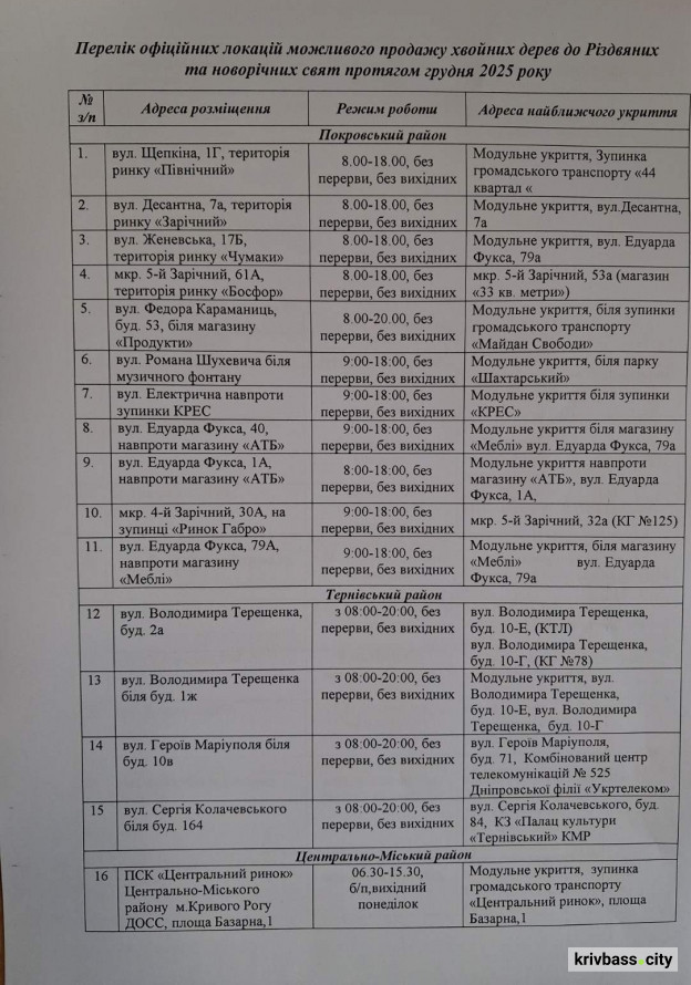 Перелік офіційних локацій можливого продажу ялинок у Кривому Розі: