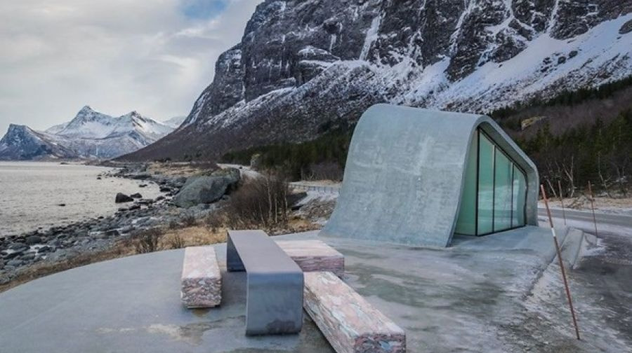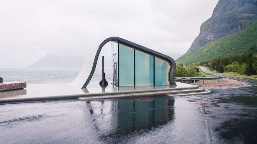 В Норвегии возвели строение, которое прозвали "самым красивым в мире общественным туалетом". Постройка выполнена в стиле минимализма и возведена на фоне скал и ледяного моря.