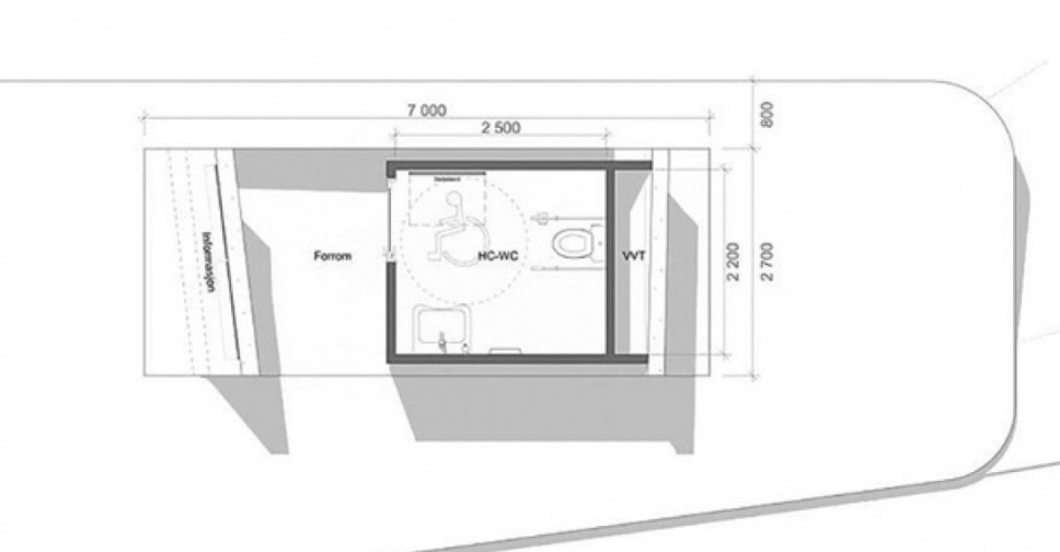 Создали его архитекторы Марит Жюстин Хауген и Даном Зохаром из Осло. Находится туалет в зоне отдыха Уредд, окруженной морем и фьордами.