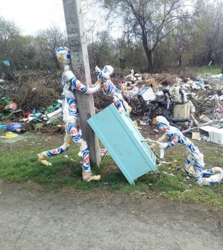Так, в Ингулецком районе Кривого Рога по улице Авроры (район НКГОКа) появились инсталляции. Человеческие фигуры, выполненные из целофановых пакетов, бумаги и проволоки, разместились на несанкционированной мусорной свалке.