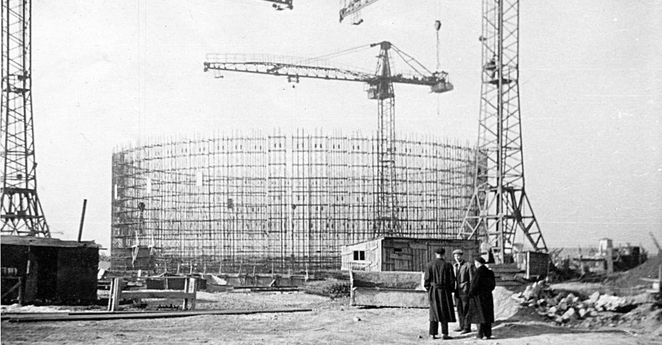 К лету 1957 года была готова выездная траншея и вырисовывались контуры железнодорожной насыпи. Приоритетной задачей для горняков стала своевременная подготовка монтажной площадки.