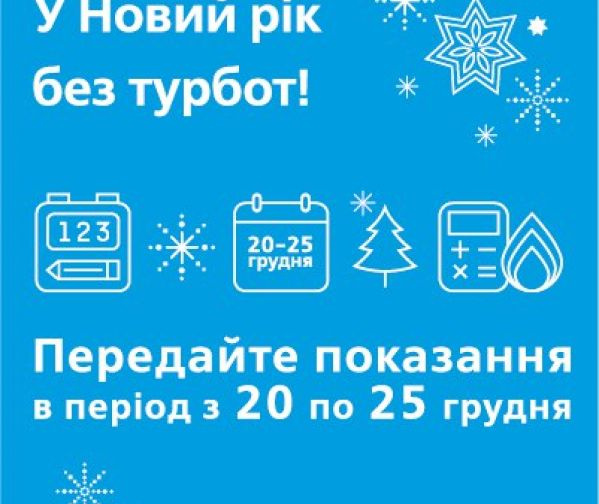 Передайте показання в період з 20 по 25 грудня у будь-який зручний спосіб – і не турбуйтесь про передачу показань під час святкування.