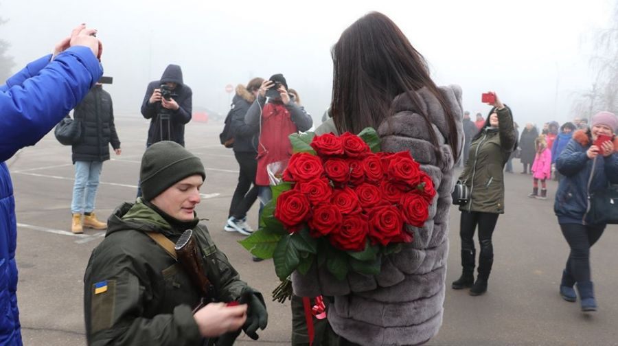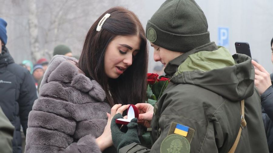 Во время церемонии двое бойцов сделали предложение своим девушкам и получили заветное "да" .