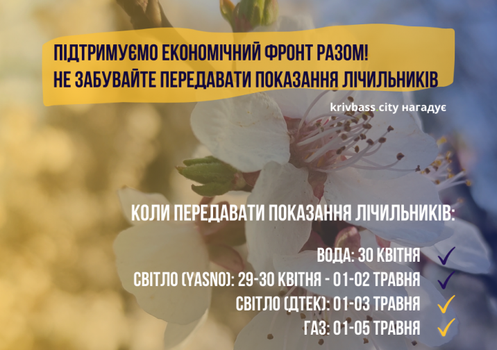 Коли передавати показання: 29-30 квітня - 01-02 травня 2022 року.