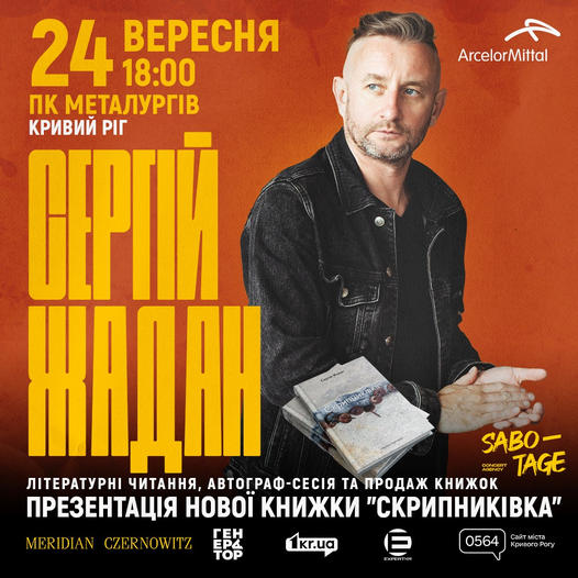 В рамках презентації нової поетичної збірки під назвою «Скрипниківка» запрошуємо 24 вересня в ДК «Металургів» у Кривому Розі.