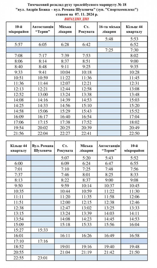 Графік руху тролейбуса №18 у вихідні дні - фото спільнота "Транспорт Кривого Рогу"