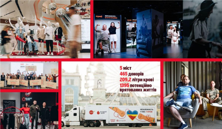 У 2022 р. банк започаткував соціальну ініціативу "Ми однієї крові". У співпраці з митцями та дизайнерами ПУМБ створює LifeSavingMerch, кошти від замовлення якого ідуть на доставки крові у гарячі точки, закупівлю такмеду для захисників, обладнання та ліків для парамедиків. Сьогодні це 45 партнерів, 6,7 тис. од. такмеду, 92 доставки крові, понад 3,6 тис. донорів. Це разом понад 160 тисячі врятованих життів. З 2024 року ми відшиваємо адаптивний одяг, 2368 од. якого вже передали у евакопотяги і шпиталі.