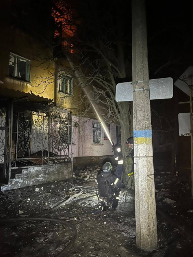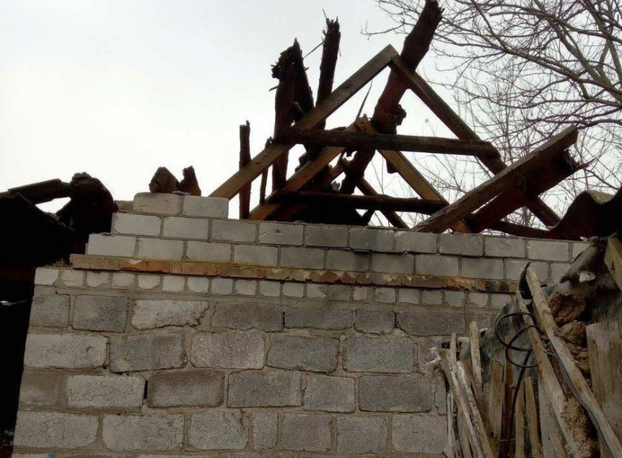 Через атаку сталася пожежа у приватному домі. Вогонь надзвичайники приборкали. Ще один будинок потрощений.