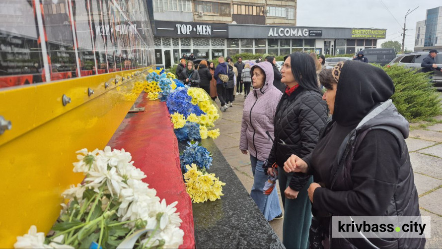 Після хвилини мовчання прозвучав гімн України, а учасники поклали квіти до Стели Героїв — місця, де криворіжці регулярно віддають шану полеглим за незалежність України.