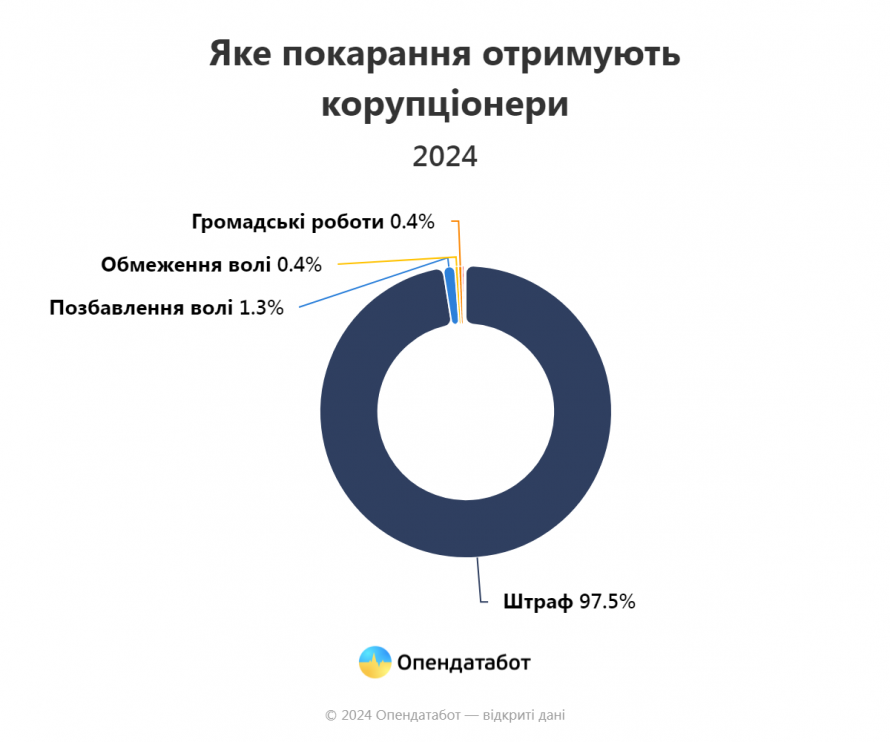 У 98% випадків цьогоріч злочинцям присудили штраф — це 1 714 вироків. Лише 1.5% засуджених отримали покарання у вигляді позбавлення волі — це 27 вироків.