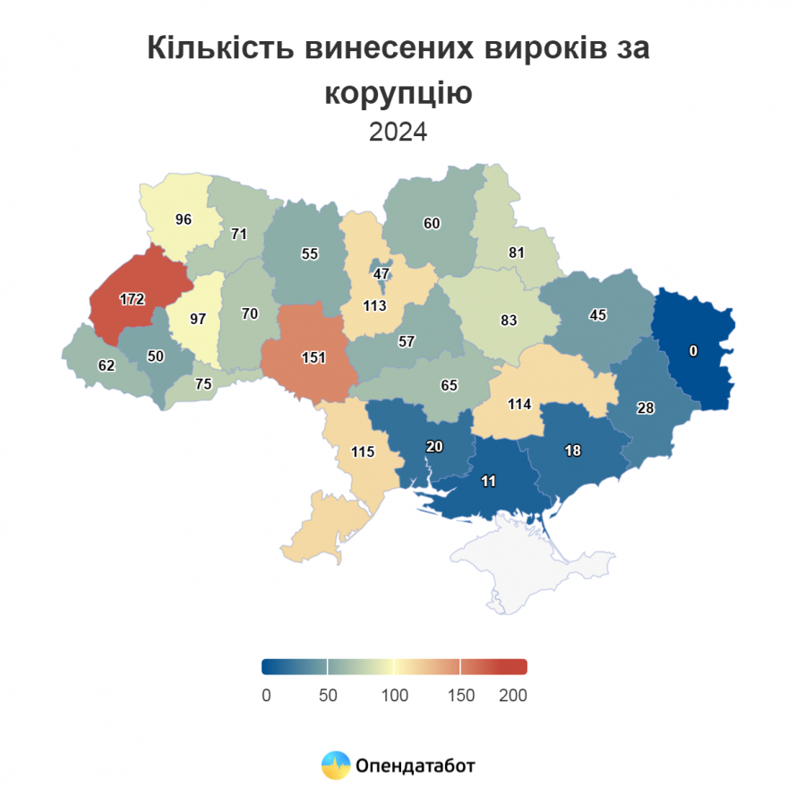 Така кількість суттєва менша за період до війни. До порівняння, за цей час щороку виносилось по 2,5 тисячі вироків, тоді як у 2021 Реєстр корупціонерів поповнився на 6870 записів.