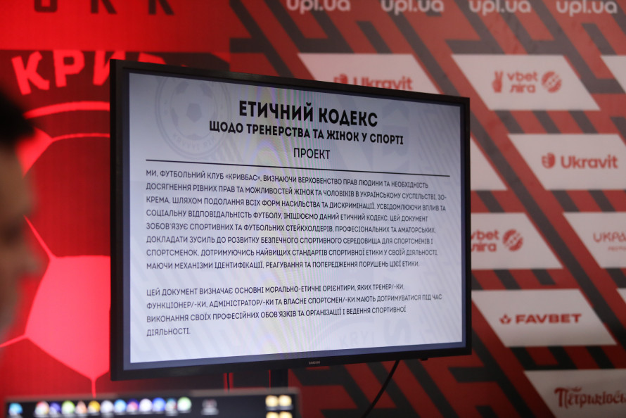 Проєкт документу та наміри щодо подальшої роботи презентували під час пресбрифінгу на стадіоні «Гірник» 1 грудня 2023 року у Кривому Розі. Для ФК «Кривбас» це наступний послідовний крок у напрямку просування рівних прав і можливостей жінок та чоловіків у контексті безпосереднього зв’язку рівності із викоріненням широкого спектру форм насильства, адже воно унеможливлює розвиток потенціалу. «Кривбас» переконаний, що насильство неприйнятне і готовий стати пілотним майданчиком для розробки та тестування Кодексу – документу, що дозволить визначити та спробувати знайти способи його зупинити.