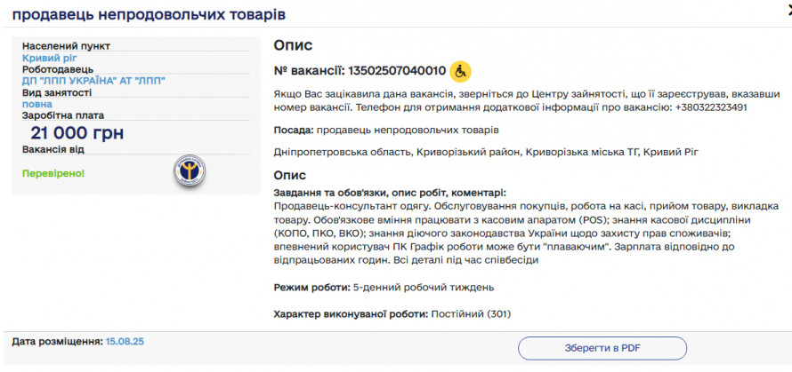 - Усім, кого зацікавила ця пропозиція, радять звернутися до криворізького районного Центру зайнятості, що її зареєстрував, вказавши номер вакансії: № 13502507040010.