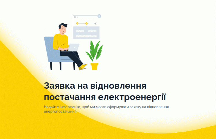 - за посиланням подати заявку на відновлення електропостачання (вказати коректну електронну адресу, оскільки на неї надійде рахунок за послугу відновлення електропостачання)
