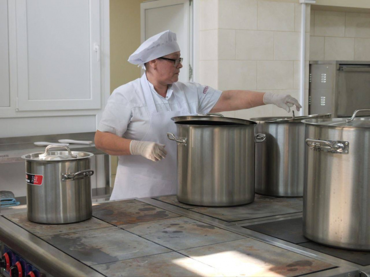 Харчоблок повністю переобладнали. Тут замінили всі інженерні мережі, оновили вентиляцію та електропостачання, облаштували сучасне професійне кухонне обладнання на суму майже 3 млн грн. Придбали плити, промислові сковорідки, стравоварочні котли, тістоміс, овочерізку, холодильники, морозильні камери та інший необхідний інвентар. Також покращили умови праці для персоналу — оновили меблі у побутових приміщеннях.