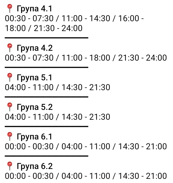 Орієнтовні графіки стабілізаційних відключень у Кривому Розі: