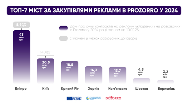Більше, ніж у Кривому Розі на рекламу витратили лише у Дніпрі (приблизно 49 млн грн) та Києві (20,6 млн грн).