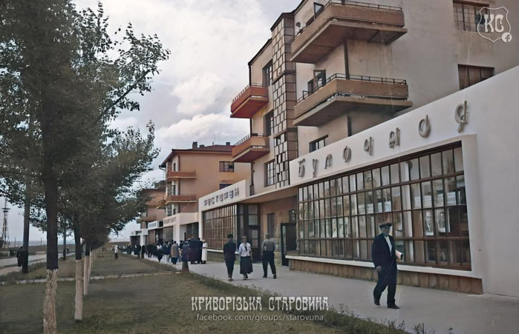 Соцмісто, вулиця Революційна (Степана Тільги), 1937 рік. Група житлових будинків «П’ятірка» з магазинами на перших поверхах. - фото групи "Криворізька старовина"
