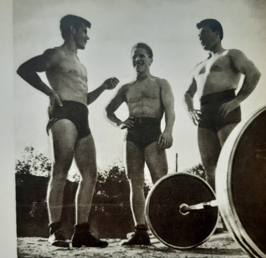 Arnold Schwarzenegger (на фото в центрі) під час свого маловідомого візиту у Кривий Ріг в рамках міжобласного спортивного фестивалю "Сила Кривбасу" у 1969 році - фото групи "Криворізька старовина"