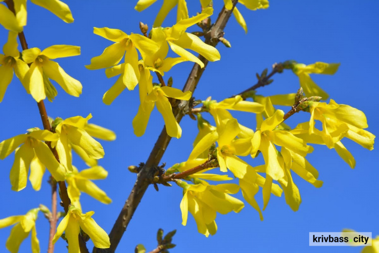 Наприкінці березня та у першій половині квітня територія Криворізького ботанічного саду НАН України наповнюється особливою атмосферою — саме в цей час масово зацвітають форзиції.