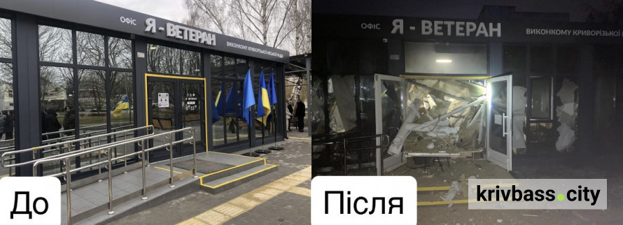 Вночі на 22 грудня росіяни шахедом зруйнували Центр надання адміністративних послуг «Я-ВЕТЕРАН» у Кривому Розі. Відновлювальні роботи тривають.