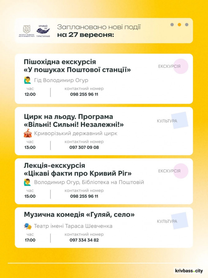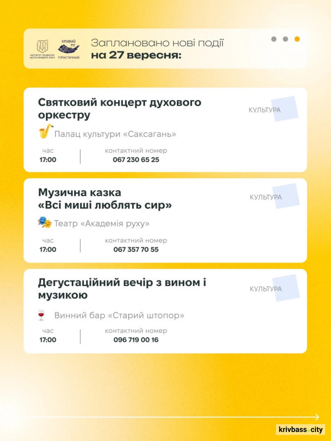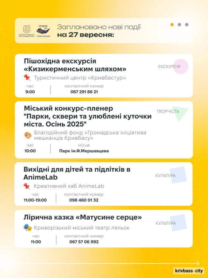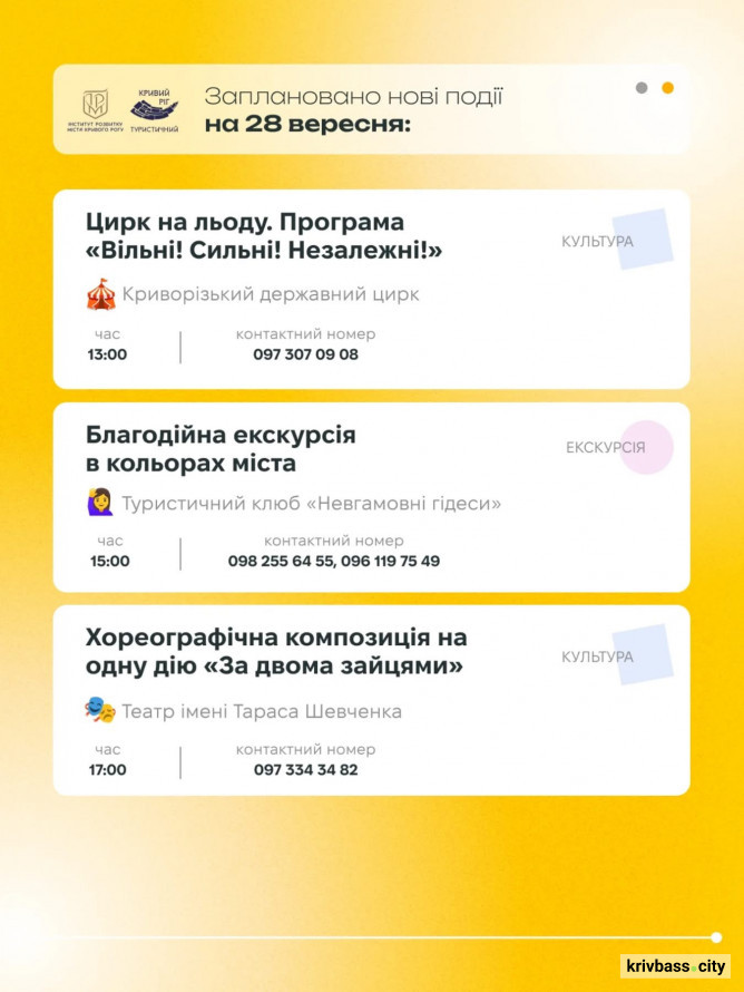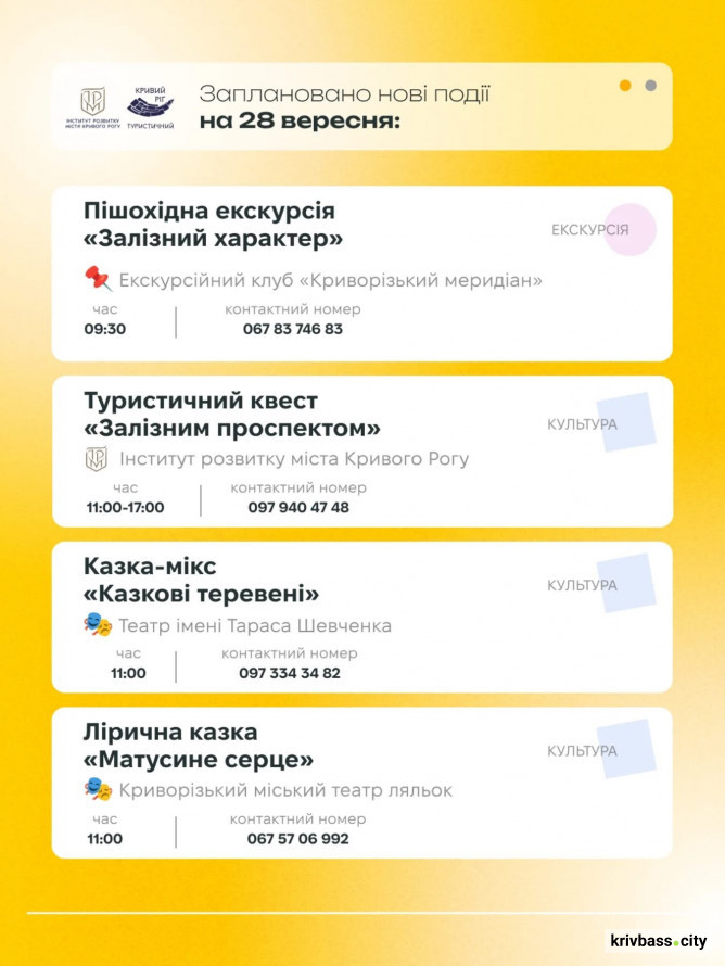 Афіша заходів у Кривому Розі 27 та 28 вересня