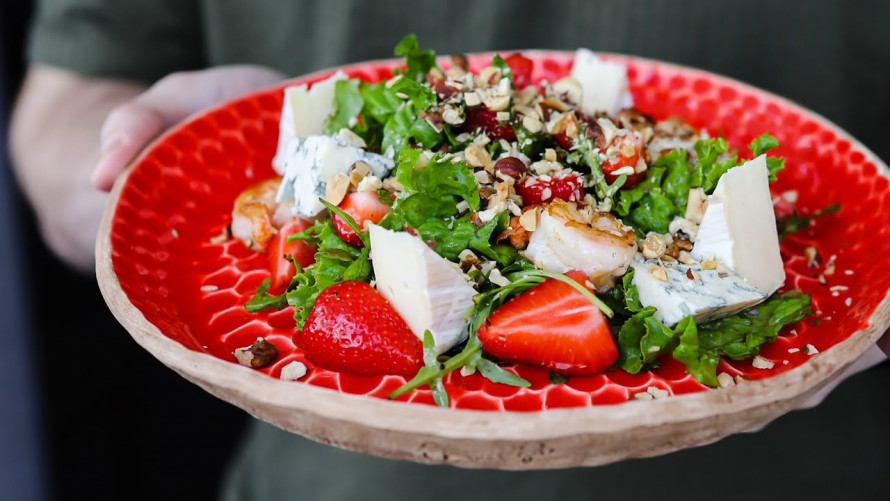 Сезон свіжої полуниці — чудова нагода не лише поласувати ягодами, а й додати їх до оригінальних страв. Один із незвичних способів використати соковиту полуницю — приготувати легкий салат із додаванням ароматного сиру та креветок.