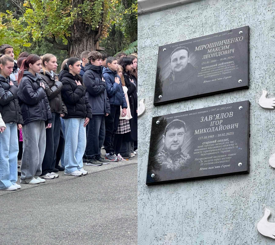 Цими днями у Кривому Розі, на фасаді одного з освітніх закладів, встановили меморіальні дошки на честь загиблих у російсько-українській війні захисників, які навчались в освітньому закладі: Мірошниченка Максима Леонідовича та Зав`ялова Ігоря Миколайовича.