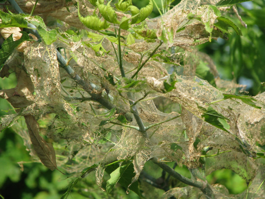 Особливо небезпечним є пошкодження молодих дерев і кущів — вони можуть загинути вже після кількох хвиль атак шкідника. Навіть якщо рослина виживає, врожайність значно знижується, а декоративний вигляд саду чи парку погіршується.