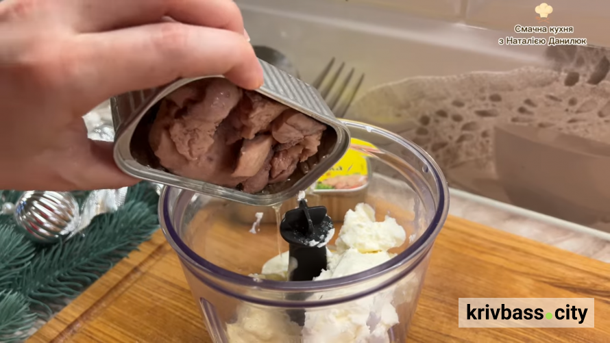 Важливо: перед приготуванням обов’язково злийте олію з печінки, інакше мус не матиме потрібної консистенції.