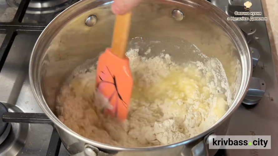 Тісто повинно вийти густим, але еластичним — воно має повільно стікати з лопатки.