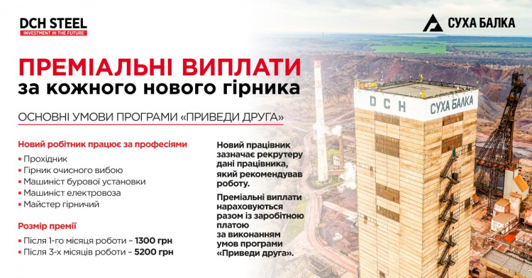 У Кривому Розі працівникам гірничо-видобувного підприємства пропонують долучитися до програми з працевлаштування «Приведи друга» та отримати додаткове преміювання.