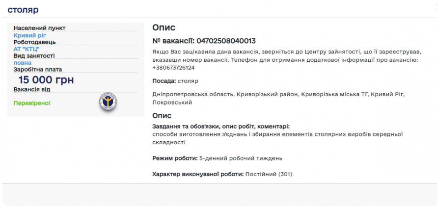 - Усім, кого зацікавила ця пропозиція, радять звернутися до криворізького районного Центру зайнятості, що її зареєстрував, вказавши номер вакансії: № 04702508040013.