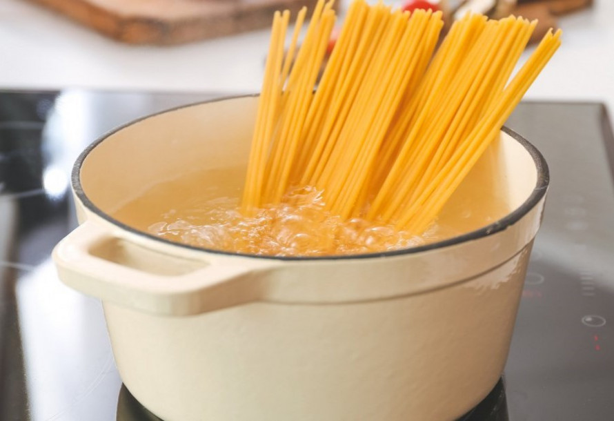 - Дочекайтеся активного кипіння. Кипляча вода допомагає локшині не злипатися одразу після занурення.