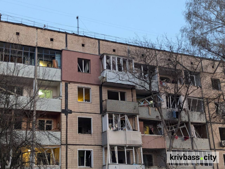 "У Кривому Розі від ракетного удару пошкоджено близько 20 багатоповерхівок та більше 30 автомобілів, заклади освіти та кав'ярні, магазини. Всюди вибиті шибки, пошкоджені фасади", - повідомив Євген Ситниченко, очільник КРВА.