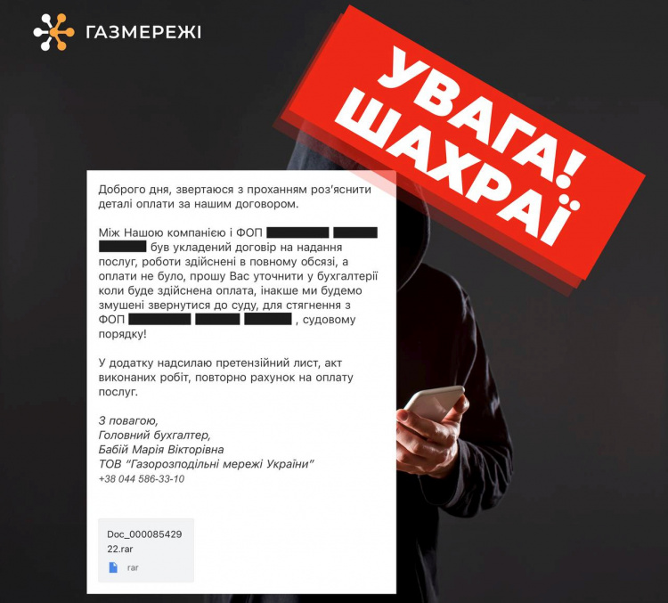Шахраї розсилають фейкові листи від імені ТОВ "Газорозподільні мережі України" із вимогою буцімто: