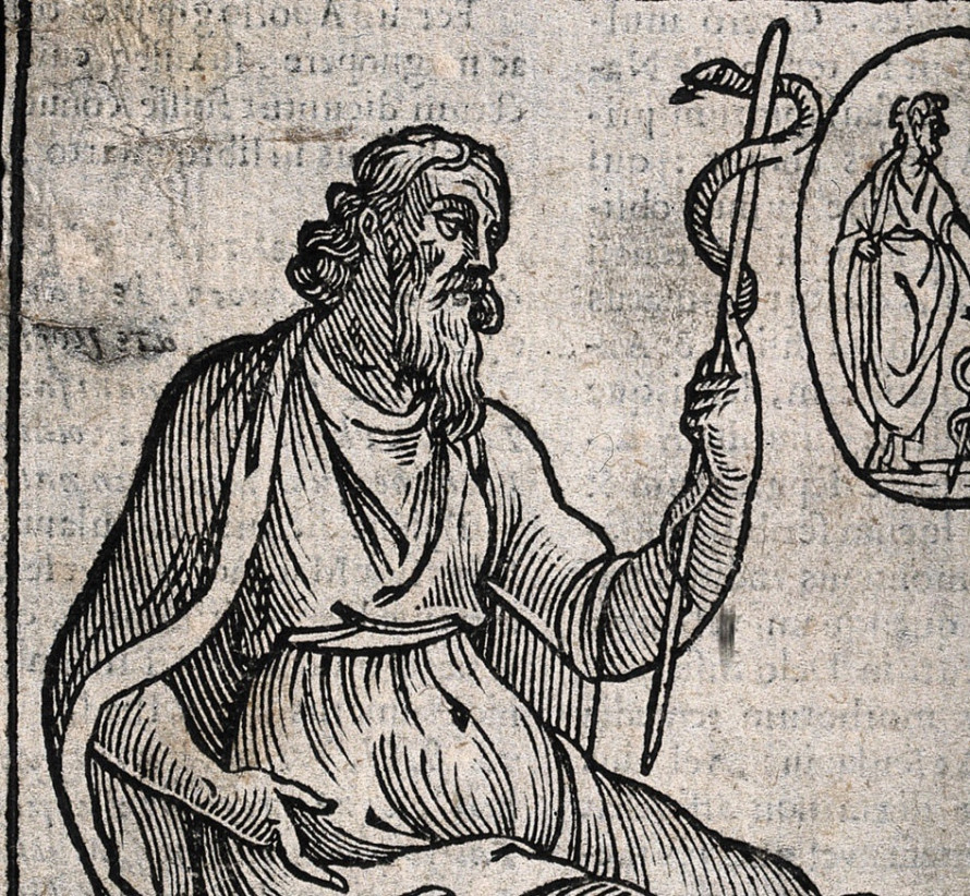 Коріння цього образу сягають у глибоку давнину. Ще стародавні греки зображали змію поруч із богом лікування Асклепієм (у римлян — Ескулапом). Його жезл, обвитий змією, став одним із найвідоміших медичних символів у світі.